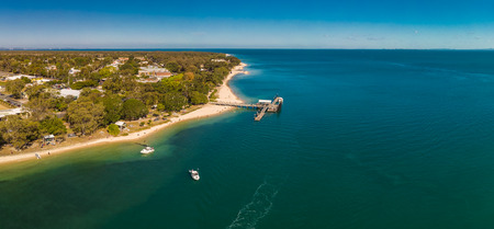 Aerial view of Bongaree Jetty on Bribie Island, Sunshine Coast, Queensland, Australia