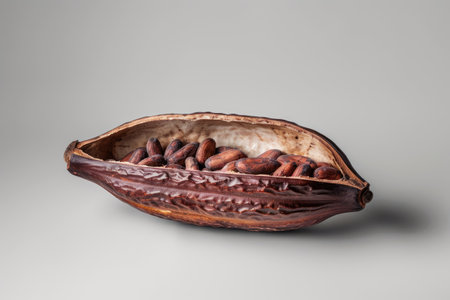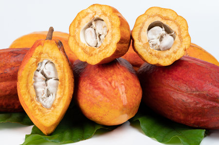 cocoa fruit, isolated against a clean, smooth white background