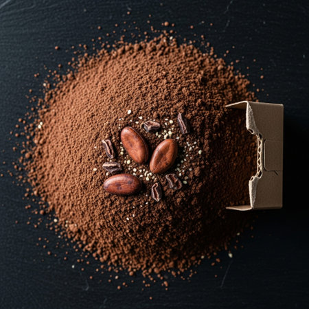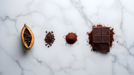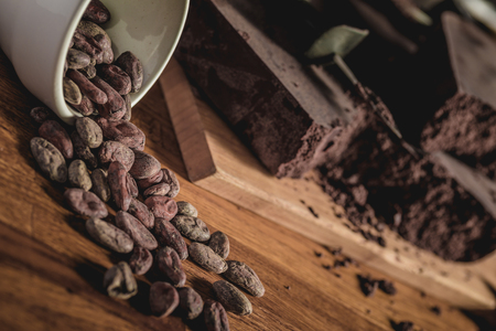 Chocolate with Cocoa Powder ans Beans, Still, Studio Shot