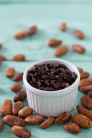 Raw Brown Organic Chocolate Cocao Nibs in a Bowl