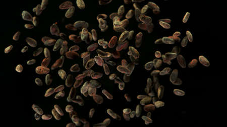 Freeze Motion Shot of Flying Raw Cocoa Beans After Being Exploded