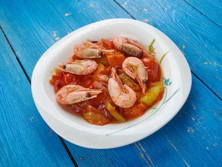 Hot red seashell soup with large shrimp