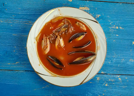 soup of mixed fish with watery tomato broth