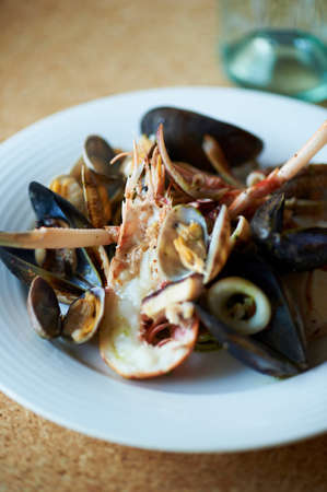pasta with seafood in the restaurant