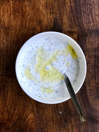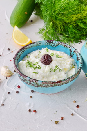 Tzatziki Sauce / Turkish Cacik Yogurt with Dill and Olive Oil. Organic Food.
