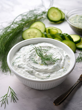 Capture the essence of Tzatziki in a mouthwatering food photography shot