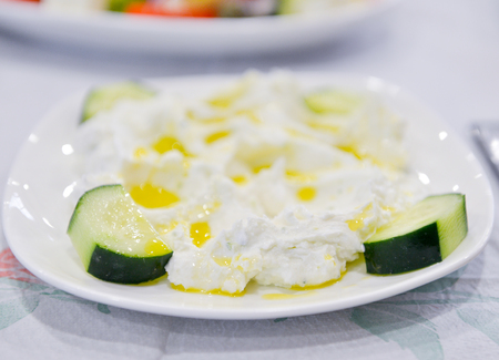 Zajiki-Dip sauce made from fresh cucumbers, yogurt and garlic. A traditional dish of Greek cuisine.
