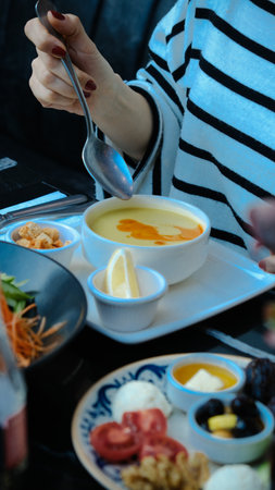 Dry tzatziki on wood floor. Snack prepared with yogurt and mint. Traditional Mediterranean cuisine delicacies. Local name dry cacik or tzatziki. Top view