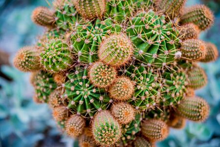 Green cactus with close-up needles. Big and small.