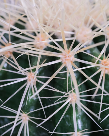 cactus (ferocactus) in the detail select focus, art picture of plant, macro photography of a plant with a small depth of field