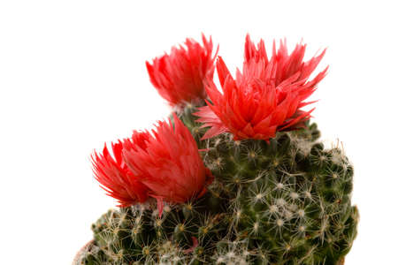 Cactus with red flowers on a white background