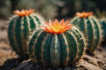 Vibrant Cactus Plants with Bright Orange and Pink Flowers in Full Bloom on Sunny Day