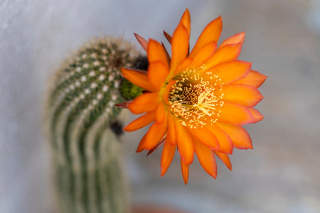 Orange cactus flower blooming in close-up view