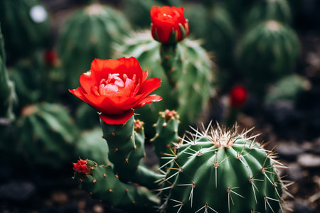 Red flowers of cacti. Generative AI