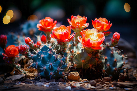 Vibrant tropical cactus with colorful blooming flowers - exotic and unique plant in natural habitat