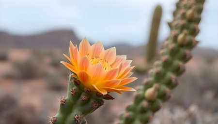 Cactuses with orange flowers in the desert of Arizona, USA