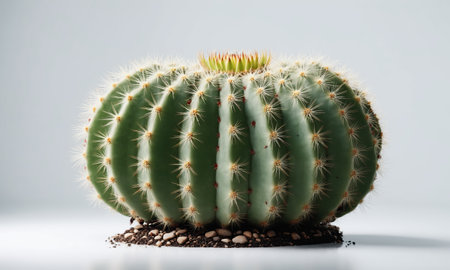 AI Generated. Close-up of a green cactus with spines and shallow roots