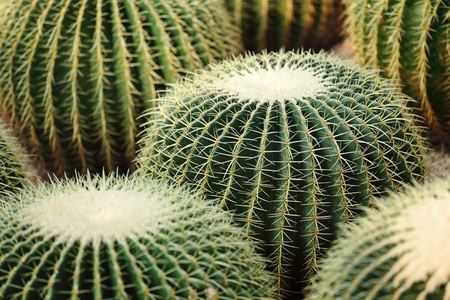 Large group of large cacti Echinocactus grusonii, Golden Barrel Cactus, Golden Ball Cactus