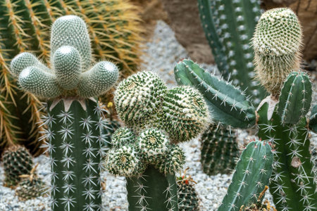 Cactus garden Various types of beautiful cacti Exotic cactus collection.