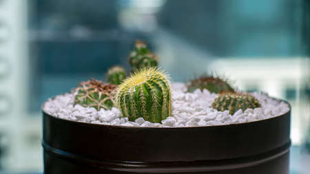 Beautiful green cactus plant in pot arranging in greenhouse.