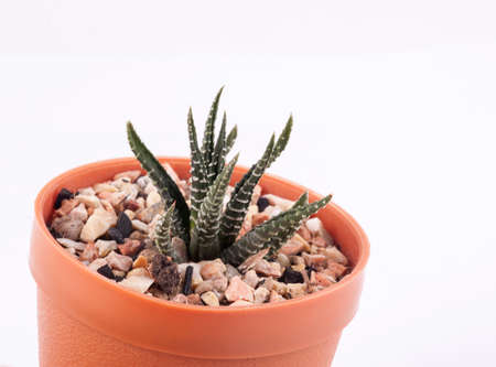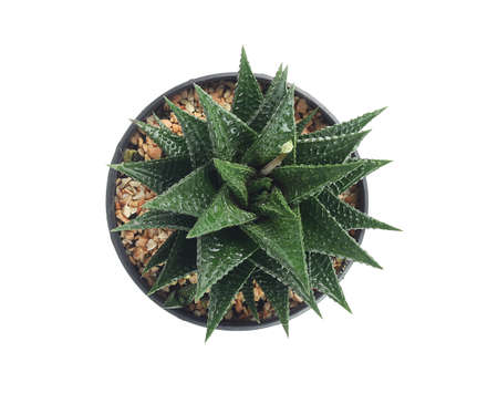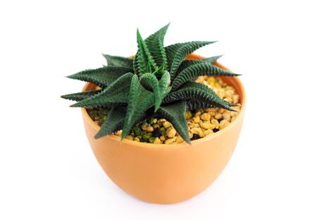 Haworthia limifolia, Cactus or Succulent plant in a small pot. Decorative tree for home decoration. isolated on white background.