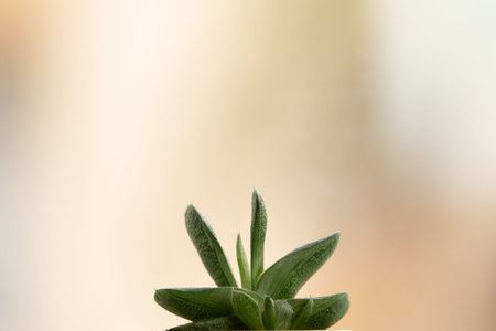 Succulent cactus with long stems packed and dark green leaves in a flowerpot for room decor. (Haworthia coarctata)
