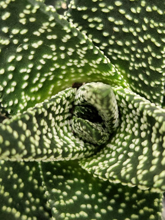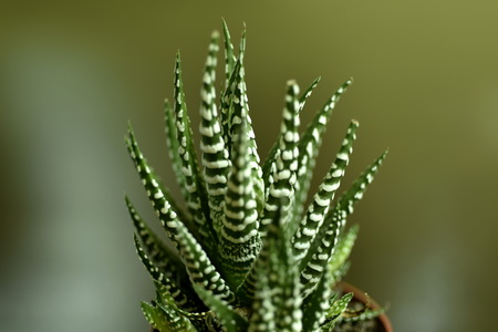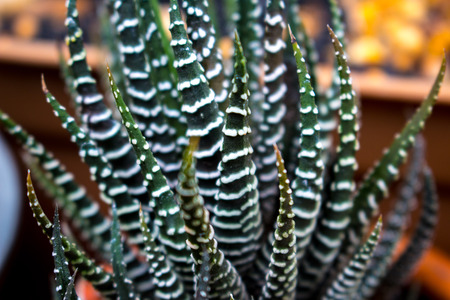 Close-up abstract background of Haworthiopsis fasciata or Haworthia fasciata or Haworthia Zebra succulent. Selective focus.
