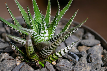 closeup of Haworthia striata with star shape rosette leaves. natural background