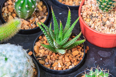 Haworthia limifolia,cactus or torch Thistle in the flowerpot