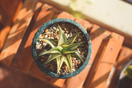 Haworthia in a pot, a pot with succulent plants haworthia on a table