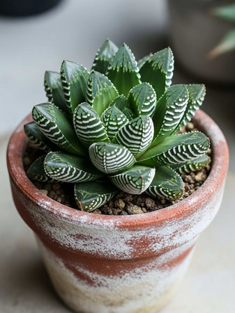 Haworthia Fasciata plant in a pot as a mini natural gift composition