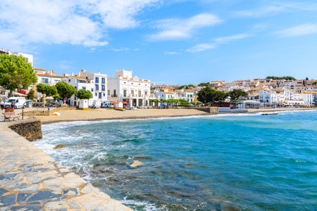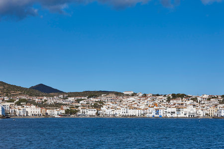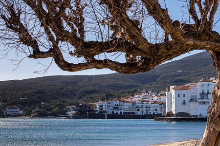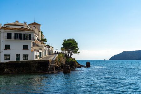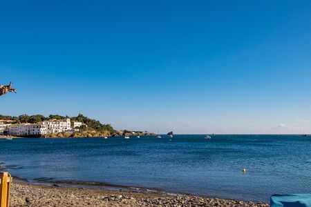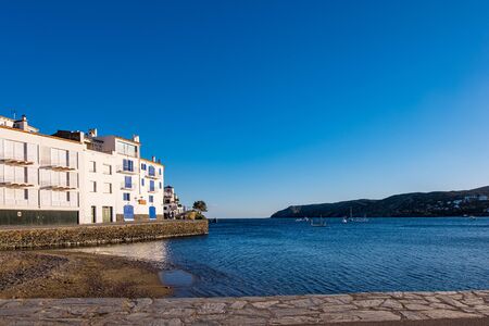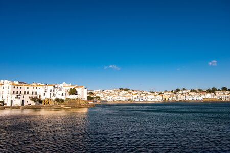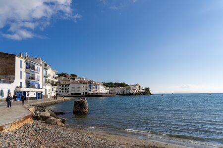 CADAQUES VILLAGE, SPAIN - JUN 4, 2019: White houses and blue sea in Cadaques port, Costa Brava, Spain.