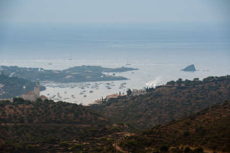 View of Cadaques from above, town on the Costa Brava of Catalonia, Gerona, Mediterranean sea. Spain