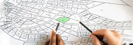 Cadastre Land Map. Cartographer Locating Building Plot