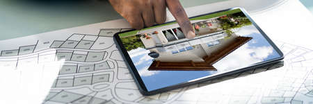 Cadastre Map And City Building Survey On Tablet