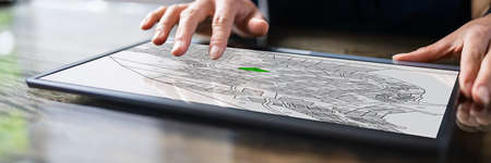 People Using Cadastral Survey Map On Tablet Screen