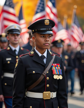 Stoic young man in dress uniform, exuding confidence and respect. perfect for military themes. A.I.