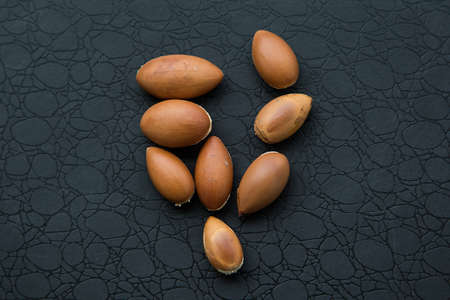 argan tree on dark background top view close-up. Argania spinosa - Argana. High quality photo