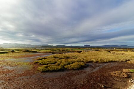 View across estuary from Northam Burrows Country Park, North Devon, England, light and shade.