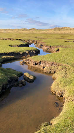 Saltwater tidal channel in scenic landscape in Sylt, Germany