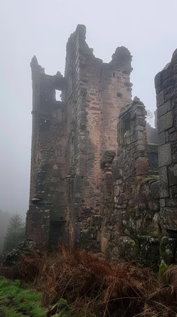 Castle tour in Scotland, historic ruins, misty, haunting beauty