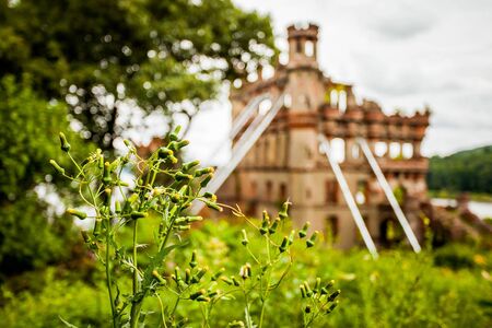 Bannerman Castle Arsenal Armory on Pollepel Island Hudson River, New York at day