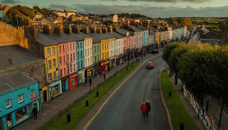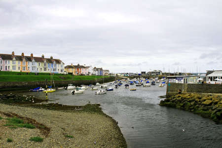 ABERAERON, WALES - 5 OCT. 2013: View on a street with colorful Regency style houses which are so typical for the town of Aberaeron in Wales, which has also featured on many UK postage stamps