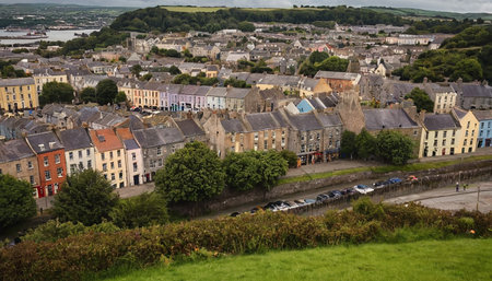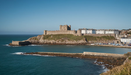 Beautiful landscape view of seaside town of Peel from Peel Castle in the Isle of Man