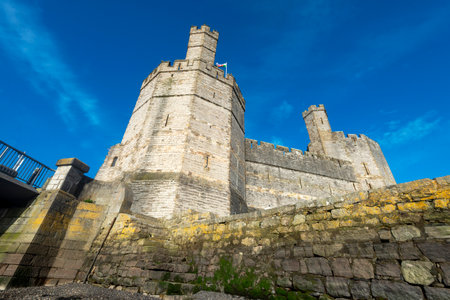 Ancient Castle walls in the historic town of Caernarfron, UK