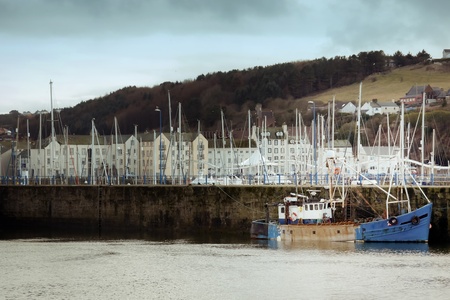 A view of the harbour at Aberaeron harbour where the river joins the sea
