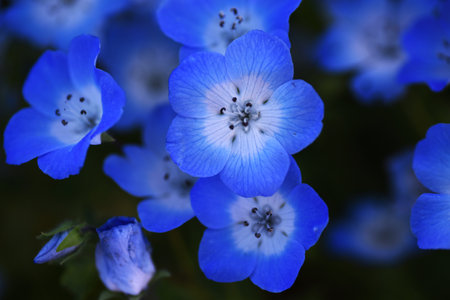This macro photograph showcases a cluster of vibrant blue plant buds and tiny white flowers. The image exhibits a shallow depth of field, highlighting the texture and detail of the blossoms. The lighting appears soft, possibly natural, creating a serene mood. Suitable for various commercial and editorial applications.