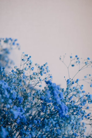 Blue gypsophila or baby's-breath flowers close up modern minimalistic design