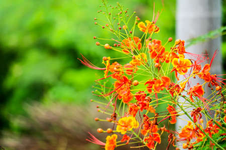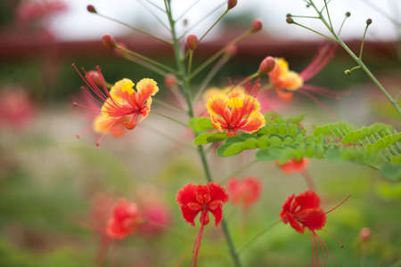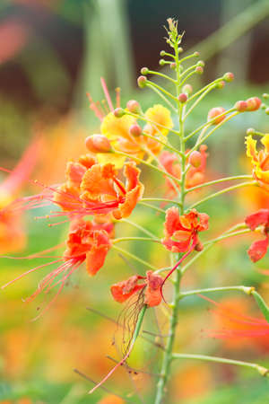 Close up Caesalpinia pulcherrima or Royal Poinciana in blurred nature background