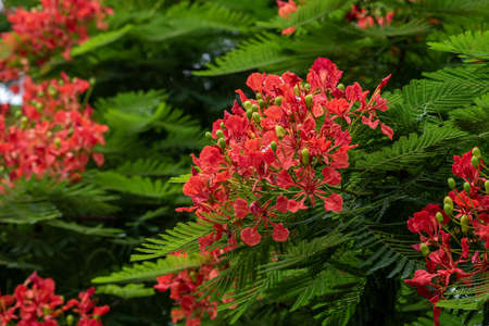 Close up Red Flamboyant flower,The Flame Tree , Royal Poinciana